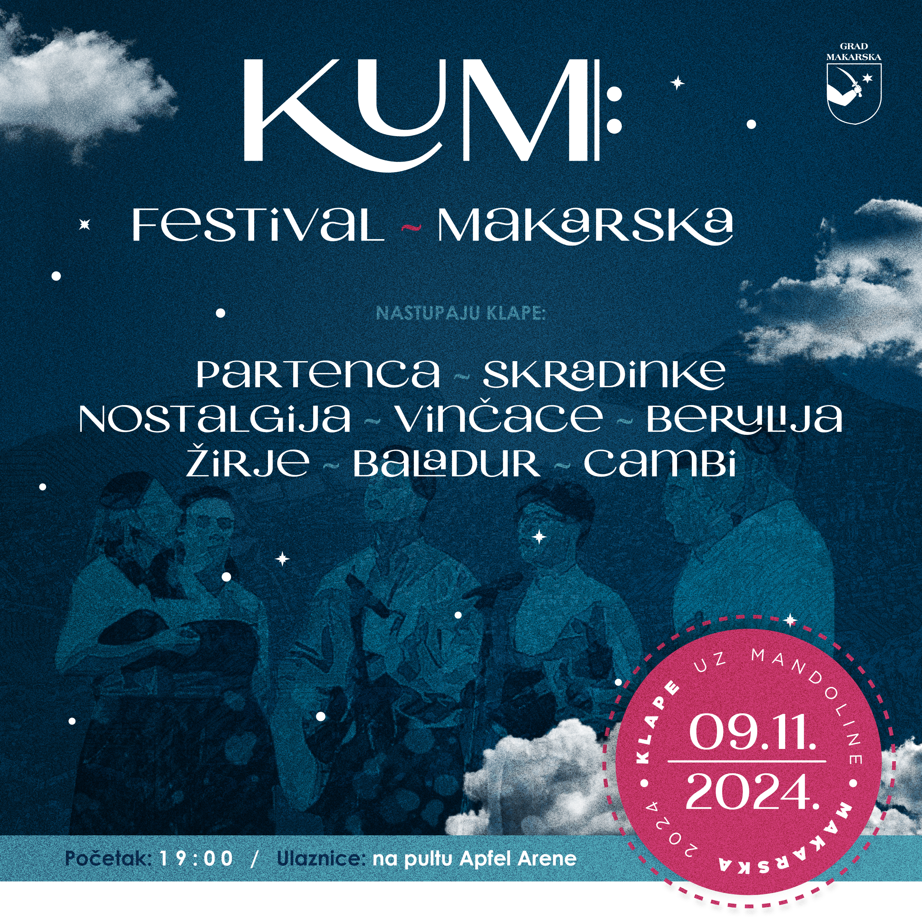 KUM je zapravo je osvježeno izdanje tradicionalnog Festivala klapa uz mandoline i gitare koji se u Makarskoj održavao krajem kolovoza. Stručno vodstvo preuzeli su prošle godine renomirani klapski pivači braća Tomislav i Zvonko Gilić koji su odmah krenuli u smjeru stvaranja jedne nove makarske izvorne priče.