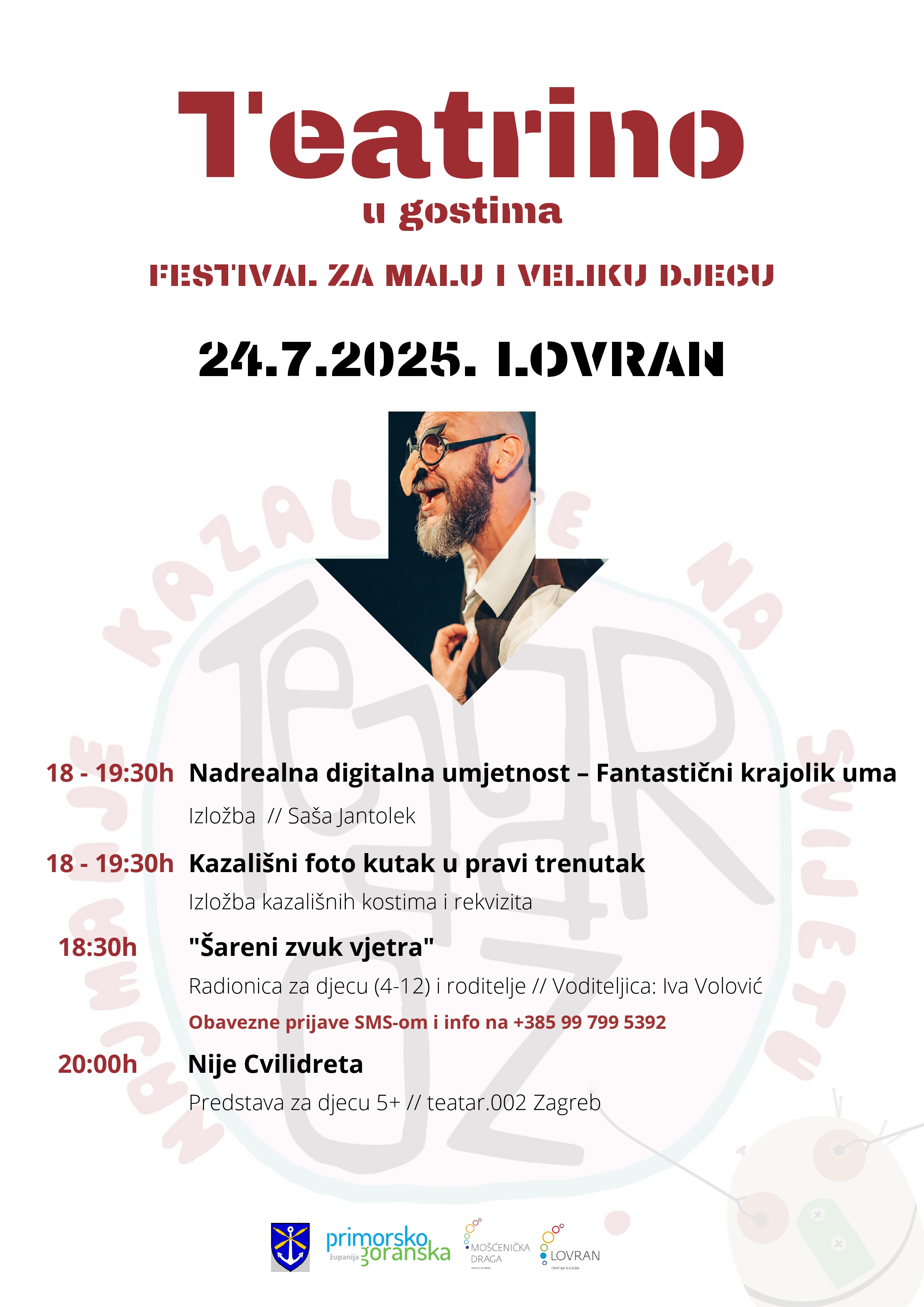 U organizaciji Turističke zajednice Lovran i Teatra OZ , renomiranog profesionalnog kazališta s dugogodišnjim iskustvom rada s djecom, festival će se održati u četvrtak, 24. srpnja, na Trgu sv. Jurja u samom srcu lovranskog starog grada.