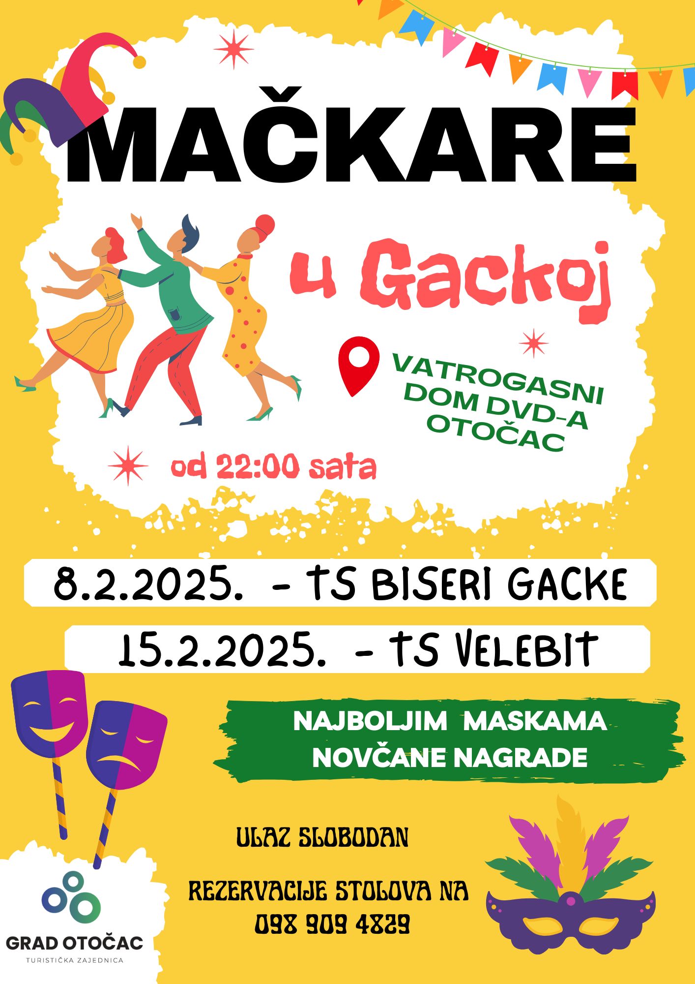 Idealno je vrijeme da izvadite šarene košulje, sandale, čizme, perike, uniforme i sl., dodate malo šminke i šljokica te okupite ekipu jer dolazi nam najšarenije, najveselije i najslobodnije doba u godini – doba mačkara i karnevala. Zaboravite na sve probleme, opustite se, maskirajte, „postanite netko drugi“ barem na nekoliko sati i zabavite se na tradicionalnim Mačkarama u Gackoj na kojima je sve dozvoljeno.