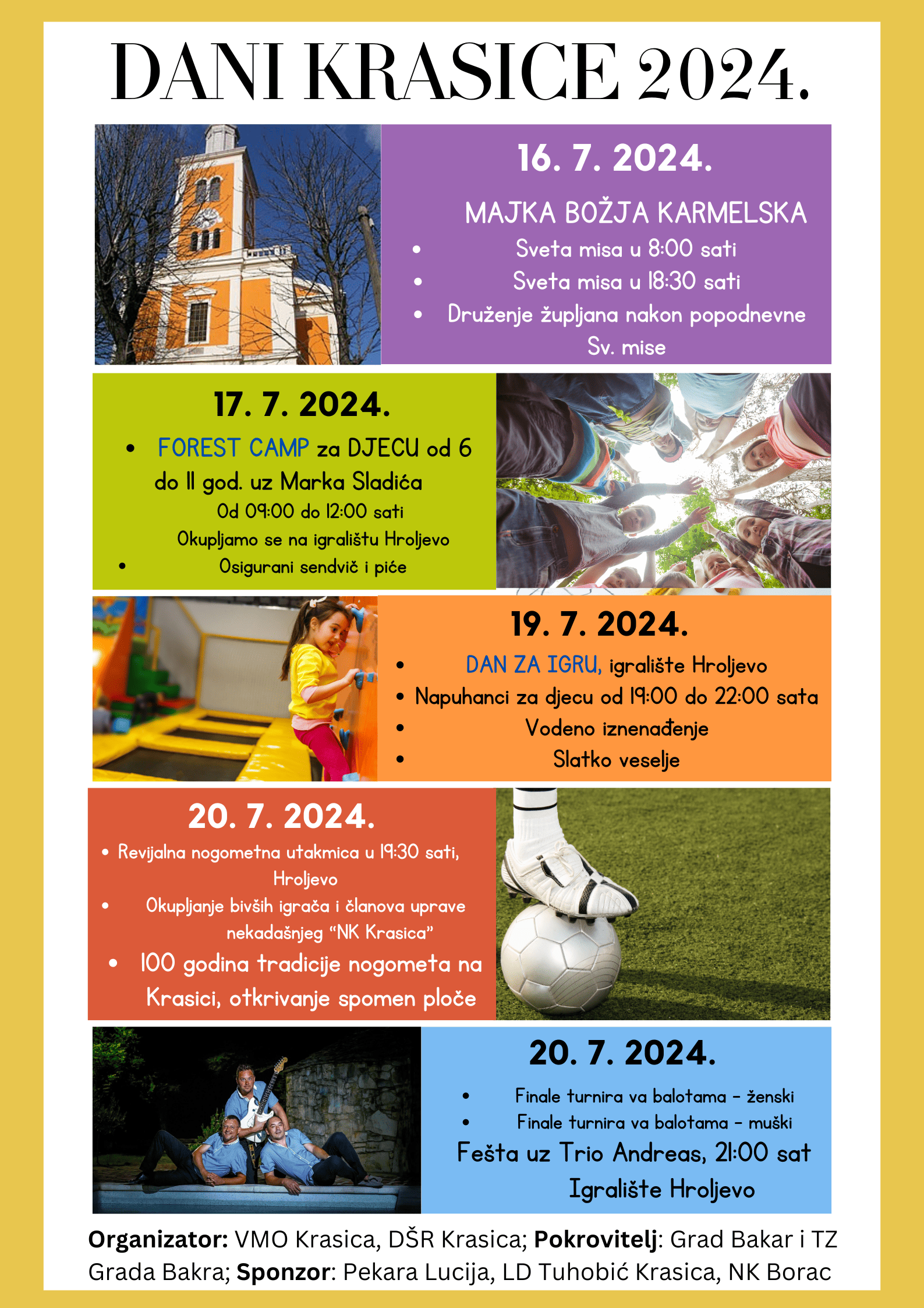 U srijedu (17.7.) u 9 sati na Krasici, tj. igralištu Hroljevo, počinje uzbudljivi Forest Camp za djecu od 6 do 11 godina. Vodi ga prekaljeni pustolovni vodič Marko Sladić. Istoga dana u Bakru još jedan zanimljiv program za najmlađe. U bakarskom Kaštelu od 19 sati autorica Iva Volović (Pomorski i povijesni muzej Rijeka) mališanima će u sklopu programa Bajkoteka otkriti kako su poznate bajke braće Grimm povezane s baštinom našeg kraja. Bit će to prvo izdanje eventa u sklopu kojeg će se održati i tematske radionice za djecu 23. i 30. srpnja u bakarskom kaštelu. Uživancije za najmlađe bit će i 19. srpnja, kad se u okviru Dana Krasice od 19 do 22 sata održava program Dan za igru.