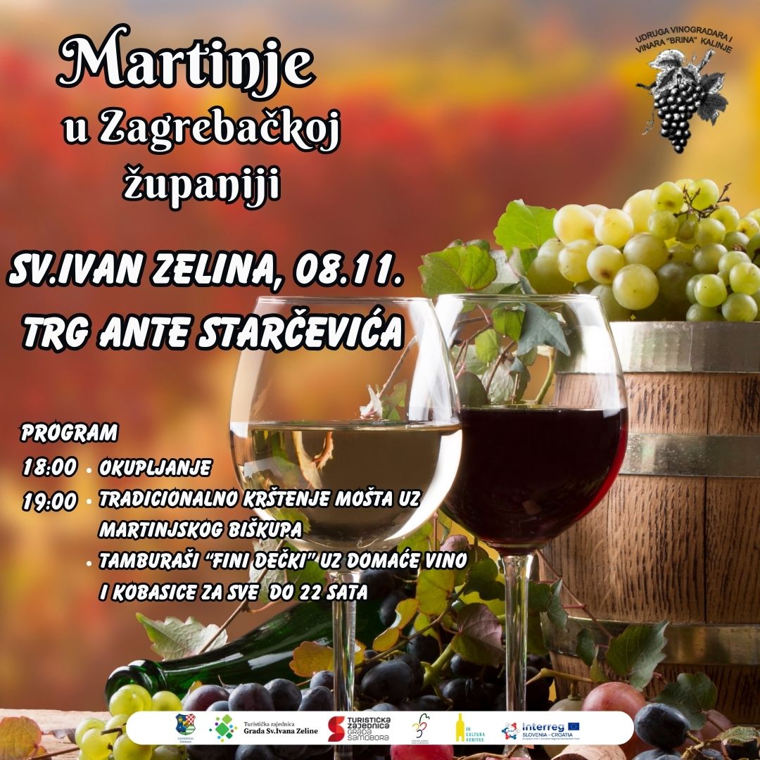 Grad Sv. Ivan Zelina za svoje je posjetitelje pripremio puno dobre glazbe, tradicionalno krštenje mošta uz preštimanog i veleučenog martinjskog biškupa, te zelinske vinare i Udrugu vinara i vinogradara “Brina”. Što se glazbe tiče, očekuje vas tamburaški bend “Fini dečki”.