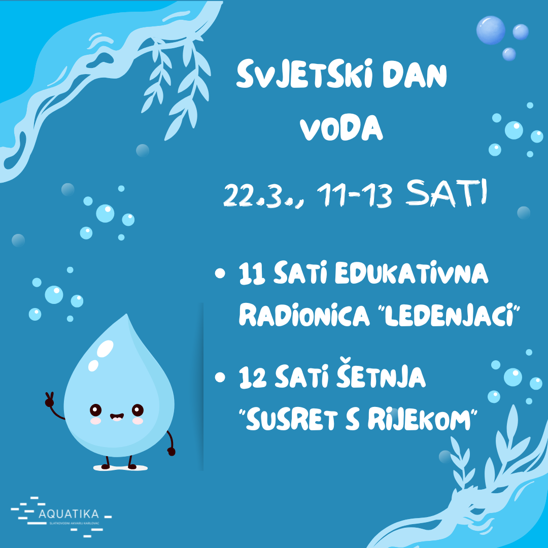 U povodu Svjetskog dana voda, Aquatika – slatkovodni akvarij Karlovac poziva sve zainteresirane obitelji s djecom i pojedince da se pridruže obilježavanju u subotu, 22. ožujka 2025. godine od 11 do 13 sati, kroz dvije zanimljive i edukativne aktivnosti.