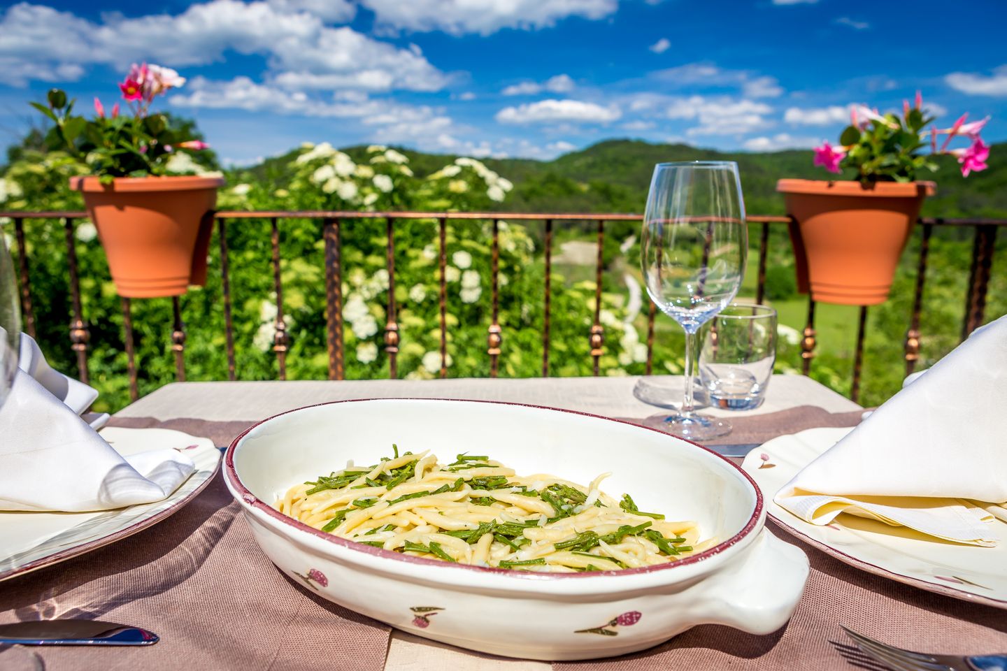 Restoran & konba Poli Banka: MENI 1: Plećka „giravolta“, fritaja od šparuga, mladoga luka i pancete / Domaći njoki od batata sa šparugama i pršutom, salata od radića „primo taglio“ / Pavlova torta i dec Muškata iz vlastitog podruma / Cijena: 40 €