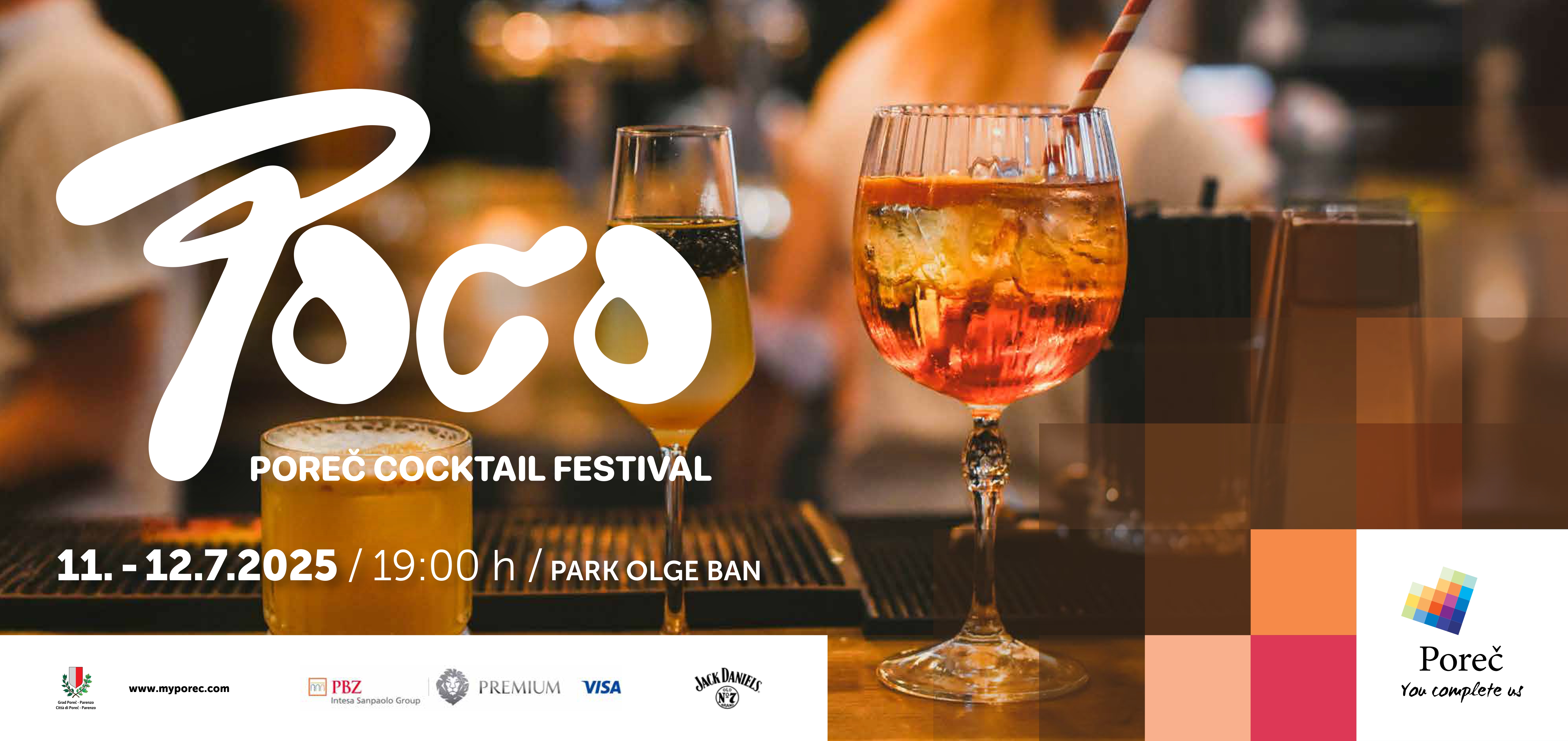 Za kraj tjedna, 11. i 12. srpnja, najavljen je i prvi Poreč Cocktail Festival – POCO. U Parku Olge Ban okupit će se najbolji regionalni barmeni koji će predstaviti originalne koktele, a sve će pratiti glazbeni program i dnevno-noćna zabava pod otvorenim nebom.