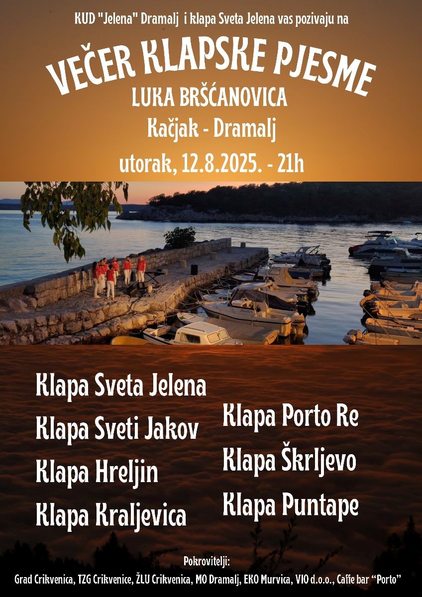 VEČER KLAPSKE PJESME, 12.8.2025., 21:00, Dramalj – uvala Bršćanovica