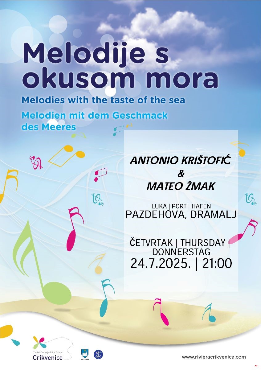 MELODIJE S OKUSOM MORA – ANTONIO KRIŠTOFIĆ I MATEO ŽMAK, 24.7.2025., 21:00, Dramalj – lučica Pazdehova
