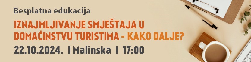 Turistička zajednica otoka Krka, u suradnji s Turističkim zajednicama općina Omišalj, Malinska-Dubašnica, Punat, Baška, Dobrinj, Vrbnik i Grada Krka, organizira predavanje pod nazivom „Iznajmljivanje smještaja u domaćinstvu turistima - kako dalje?“.
