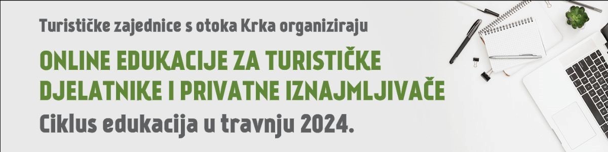 Turistička zajednica otoka Krka, u suradnji sa TZ Općine Omišalj, TZ Općine Malinska- Dubašnica, TZ Grada Krka , TZ Općine Punat, TZ Općine Baška, TZ Općine Dobrinj i TZ Općine Vrbnik, u travnju 2024. organizira dvije online edukacije / webinare putem Zoom platforme, namijenjene turističkim dionicima s područja njihovih općina/grada.