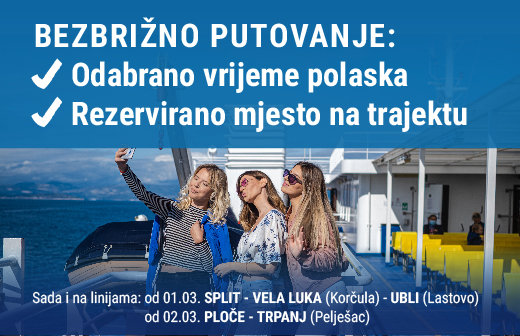 20.02.2021. Usluga rezervacije na dvije nove trajektne linije Sada i na linijama Split - Vela Luka (Korčula) - Ubli (Lastovo) i Ploče – Trpanj (Pelješac).