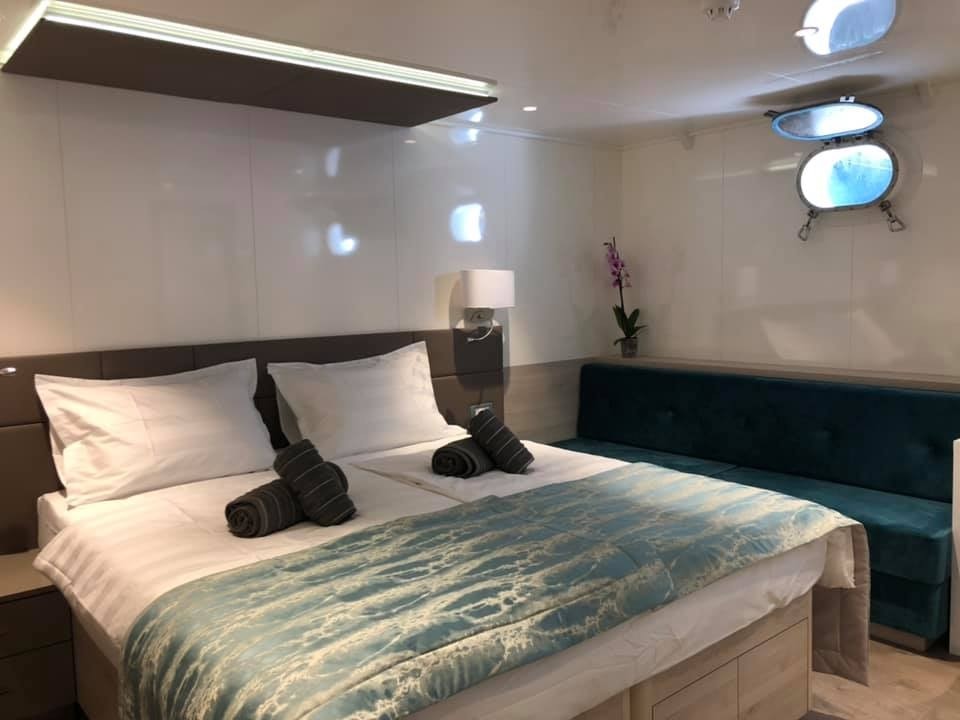 19 luksuznih kabina osigurava smještaj za 38 putnika koji će zasigurno uživati u svim pogodnostima koje ovaj prekrasni brod može pružiti.