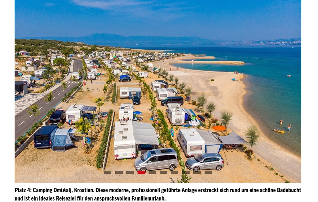 Povoljnu poziciju Hrvatske na njemačkom tržištu potvrđuje najnovija lista top 10 kampova Europe, koju je objavio portal ADAC-a posvećen kamping segmentu PinCamp. Na navedenoj se listi na prva dva mjesta nalaze njemački kampovi, dok odlično 3. i 4. mjesto zauzimaju hrvatski kampovi Aminess Maravea Caming Resort iz Novigrada i Camping Omišalj.