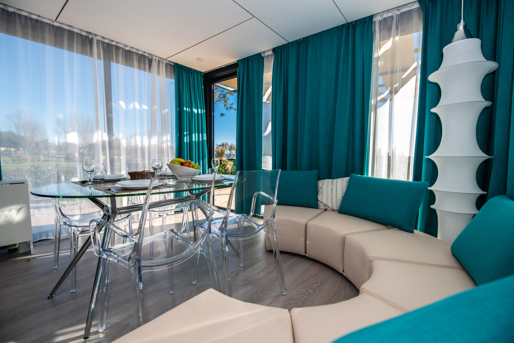- mobilne kućice Camping Villa biti će postavljene na prostrasne parcele od 250 m2 te će imati imati 40 m2 unutrašnjeg prostora i pokrivenu vanjsku terasu od 25 m2. Mobilne kućice kapaciteta 5 osoba imati će dvije spavaće sobe (jedna s bračnim krevetom, a drugu sa krevetom za dvije osobe i dodatnim krevetom na kat za jednu osobu), dnevnom sobom s kaučom za jednu osobu i LCD TV-om, potpuno opremljenom kuhinjom s hladnjakom, indukcijskom pločom za kuhanje te aparatom za filtar kavu, 2 kupaonice s tušem.