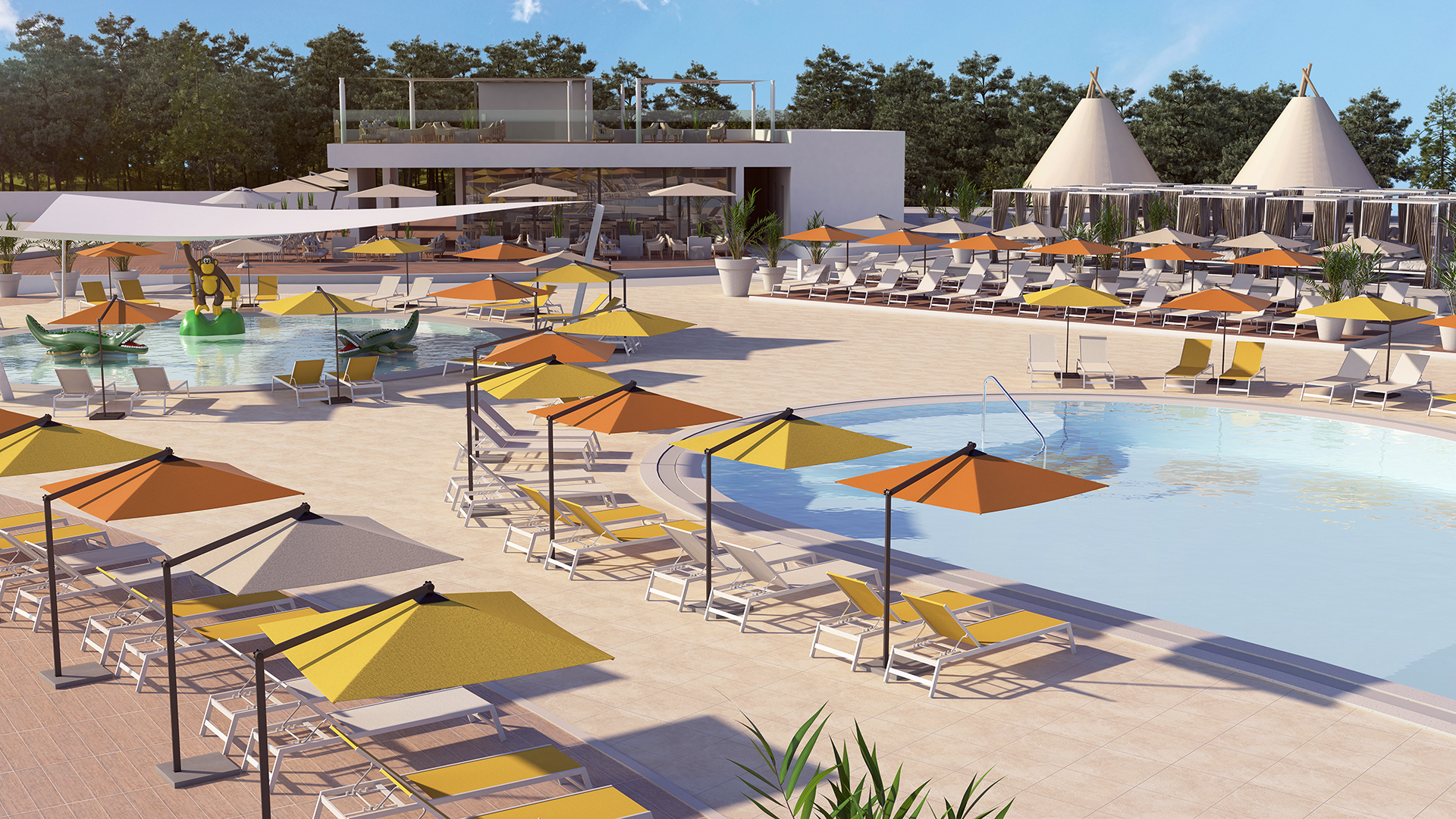Kamp će dobiti centralni bazen koji uključuje i mali dječji bazen te aquagan sa uređenim sunčalištem sa ležaljkama i suncobranima, sa ukupnom vodenom površinom od preko 600 m2. Područje oko novog bazena postati će centralno mjesto u kampu za dnevne aktivnosti i večernje šetnje i opuštanja.