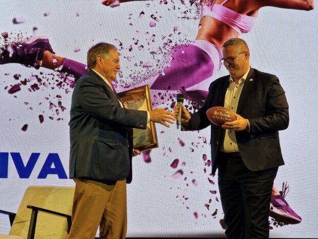 Direktor Hrvatske turističke zajednice Kristjan Staničić na završnici Sunset Sports Media Festivala u Zadru dodijelio je posebno priznanje Billu Belichicku za doprinos u promicanju Hrvatske
