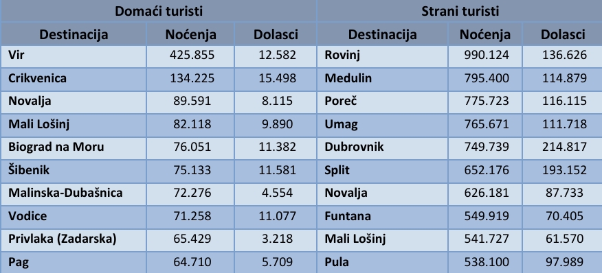 Jedna zanimljiva stvar za primijetiti je da Hrvati ipak ne idu masovno na turistički najpoznatija mjesta (Dubrovnik, Rovinj, Poreč) već biraju Crikvenicu, Mali Lošinj ili Biograd na Moru.