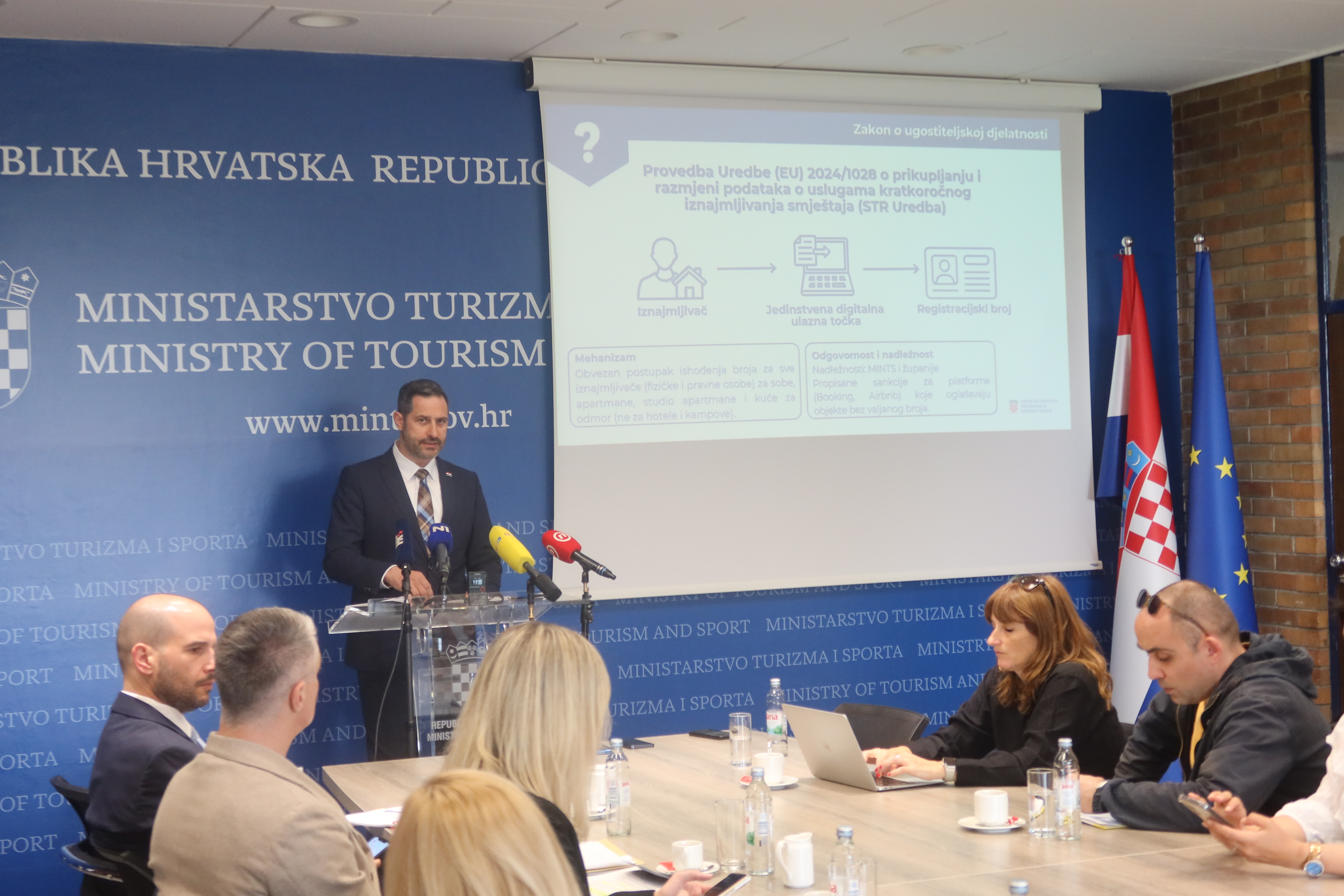 Ministar turizma i sporta Tonči Glavina danas je predstavio Nacrt prijedloga Zakona o ugostiteljskoj djelatnosti, čiji glavni ciljevi su suzbijanje neregistriranog kratkoročnog najma smještaja, provedba Uredbe (EU) 2024/1028, digitalizacija postupaka u turizmu te modernizacija sustava kategorizacije ugostiteljskih objekata i usluživanja hrane i pića.