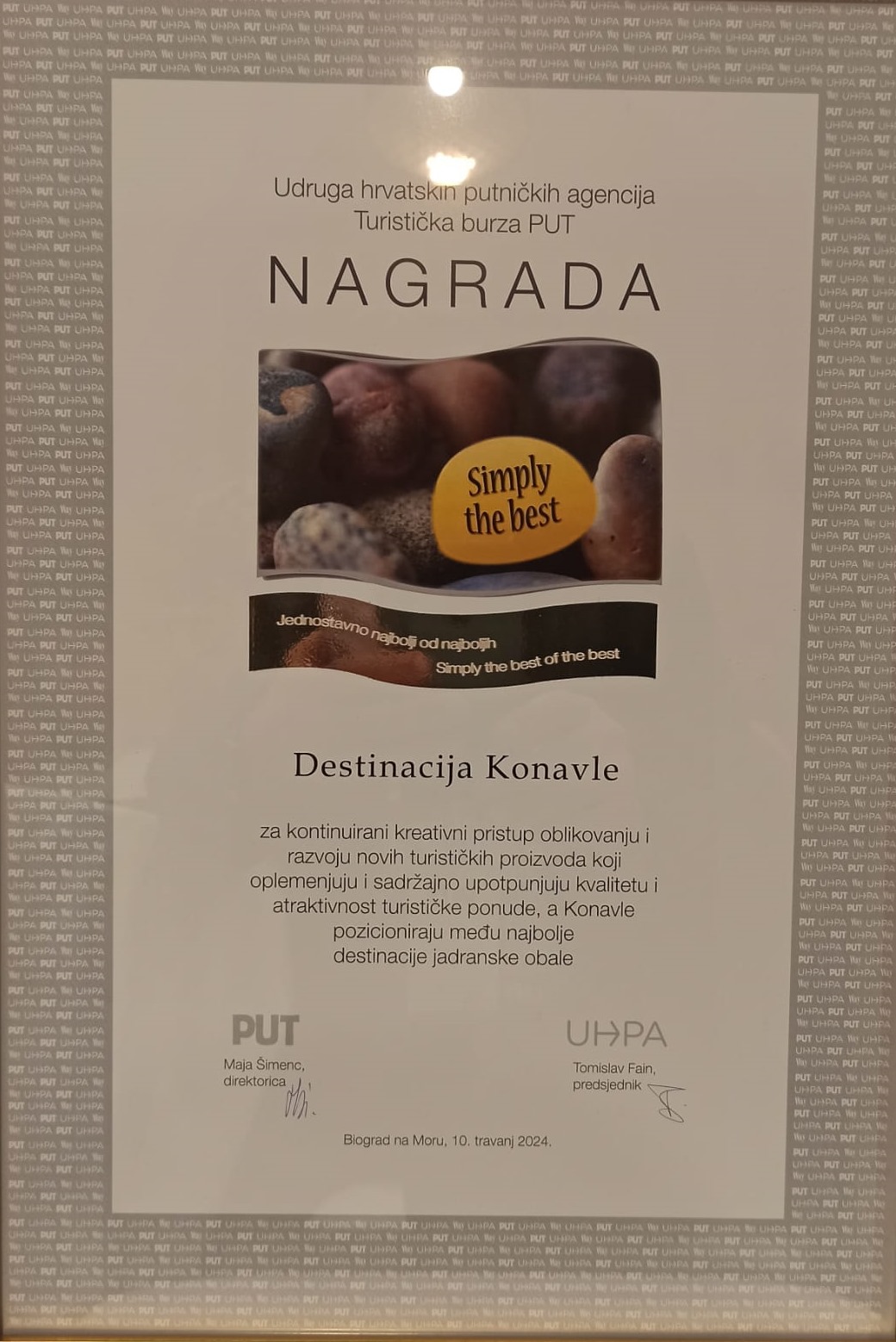 Na sinoćnoj svečanoj dodjeli nagrada u sklopu 24. Burze PUT, TZ općine Konavle uručena je nagrada Simply the best - Destinacija Konavle. Konavle su ovu nagradu dobile za kontinuiran kreativni pristup oblikovanju i razvoju novih turističkih proizvoda koji oplemenjuju, sadržajno upotpunjuju kvalitetu i atraktivnost turističke ponude, a Konavle pozicioniraju među najbolje destinacije jadranske obale.