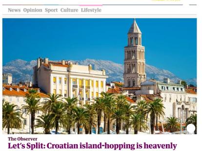 Prestižni britanski The Guardian objavio je prilog Let’s Split: Croatian island-hopping is heavenly u kojemu su, osim Splita, posebno istaknute ljepote otoka Brača, Hvara, Šolte, Visa i Mljeta. Reportaža koju potpisuje novinarka Eva Wiseman rezultat je suradnje Predstavništva HTZ-a u Londonu i TZ Splitsko-dalmatinske županije s uredništvom The Guardiana, odnosno sestrinskog medija Observera.