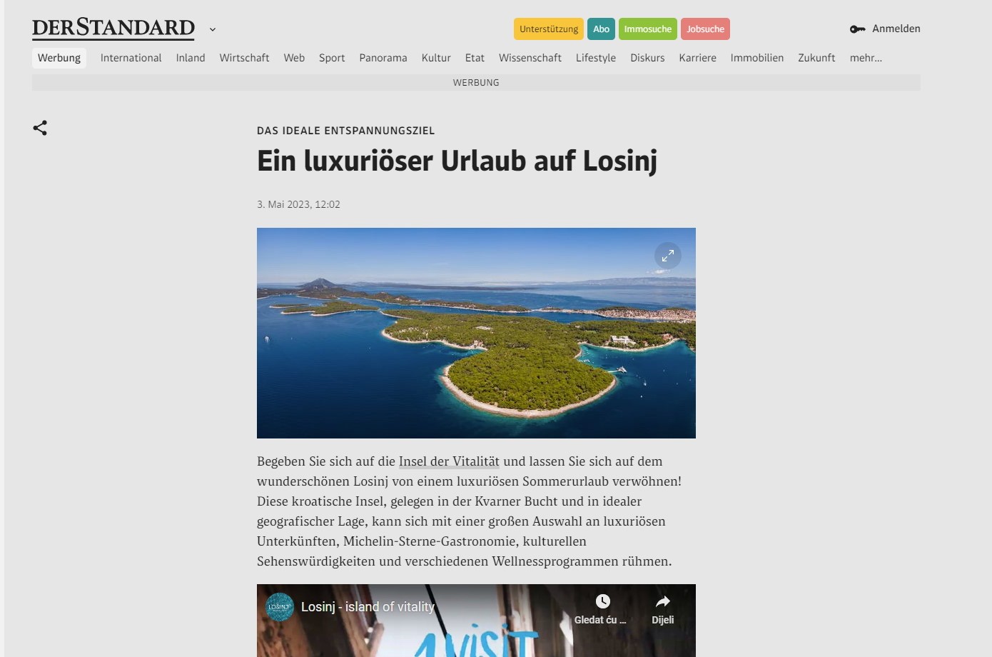 Promocija na najčitanijem njemačkom portalu t-online.de usmjerena je prema obiteljima i mladima, ljubiteljima aktivnog odmora te kampiranja, dok je promocija na austrijskom derstandard.at usmjerena prema segmentu luksuznog odmora te je fokus na jedinstvenom hotelskom smještaju, prirodnim ljepotama i eno-gastro ponudi destinacije. Također, atraktivan video format oglasa planiran je u Njemačkoj na web.de portalu, a svojom dinamikom privlači pažnju korisnika te prenosi atmosferu i ljepotu destinacije. Kampanja je započela 3. svibnja i trajat će mjesec dana.